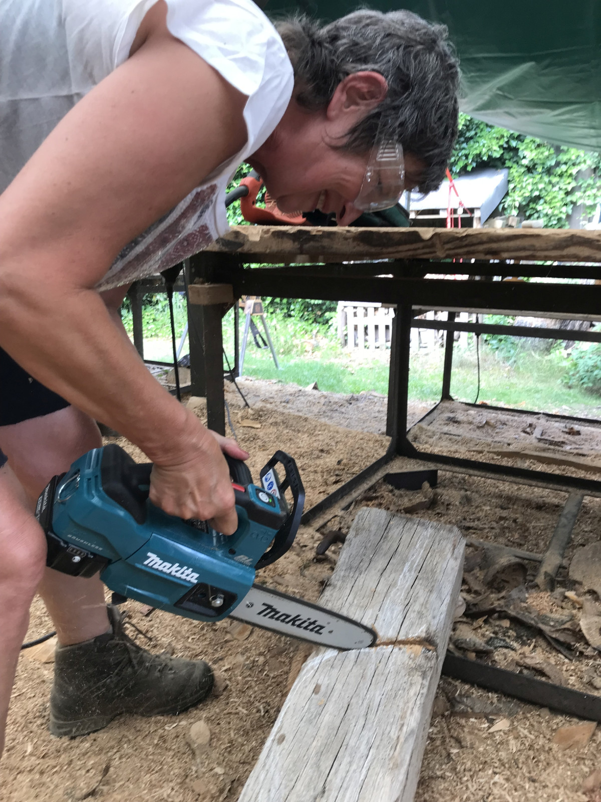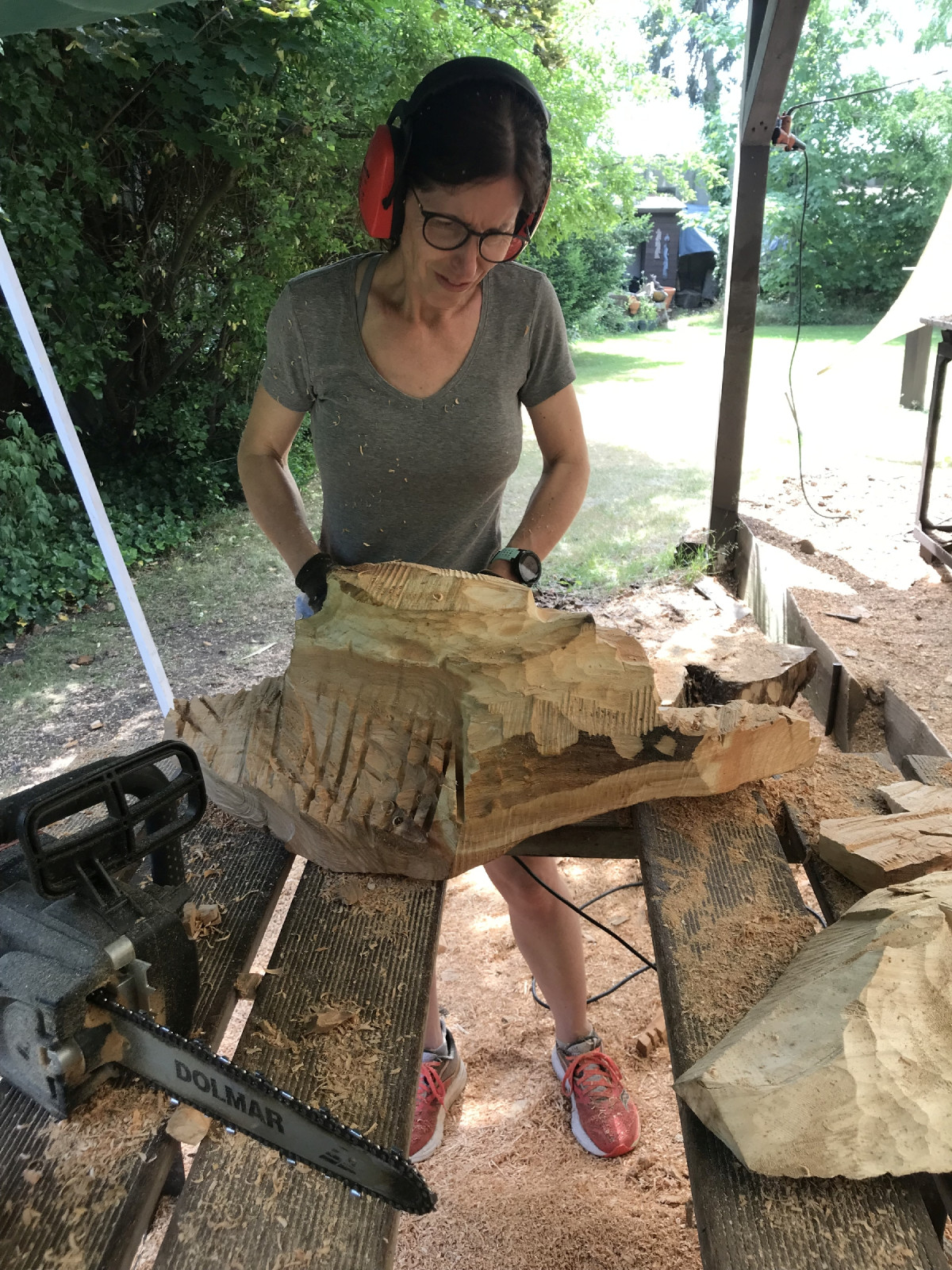 Über dieses Niveau sind meine Damen aber weit hinaus. Schließlich kommen sie ja seit Jahren zu uns. Sie wissen, wie es geht und manche inzwischen sogar was sie wollen. Letzteres kann aber zum Verhängnis werden. Man sollte sich immer bewußt sein, daß auch andere ein Mitspracherecht haben - Holz, Säge, rostige Nägel, Sollbruchstellen, Pech und Ungeschicklichkeiten. Manchmal hilft dann zwar "Edelpfusch" noch besser ist es, kreativ auf Zwischenfälle zu reagieren. Das volle Programm eben. Wie die Damen das umgesetzt haben- guckst du!