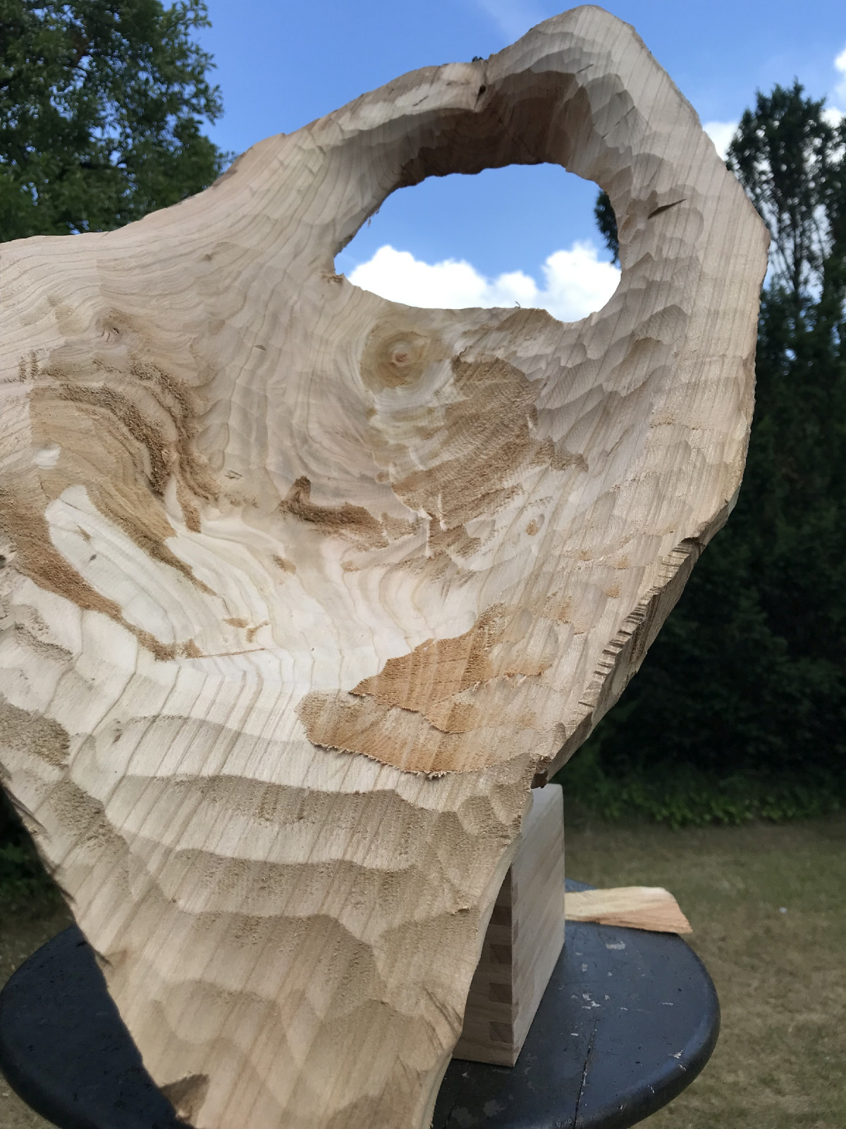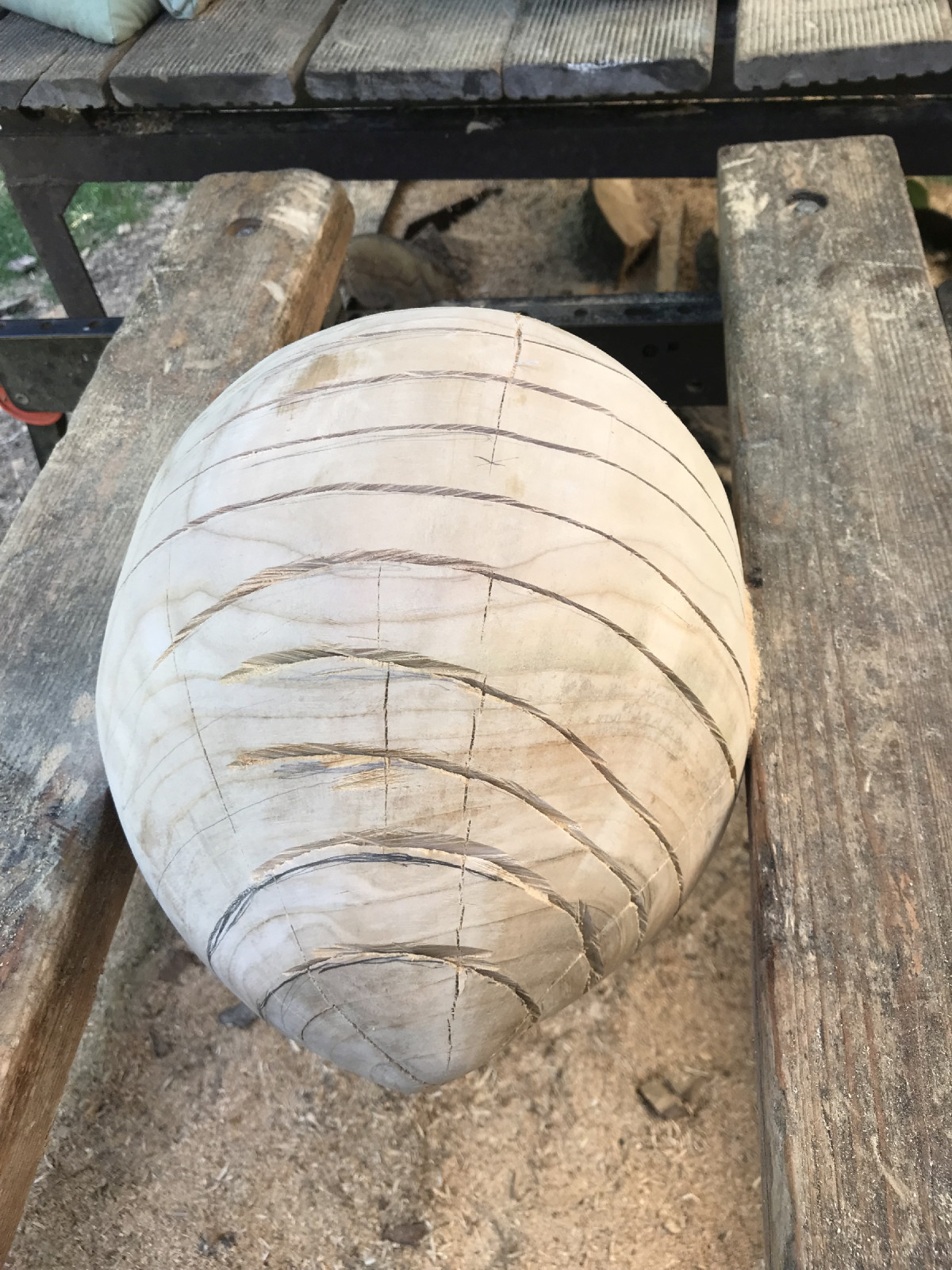 Säge da etwa 12 Umfänge rein.