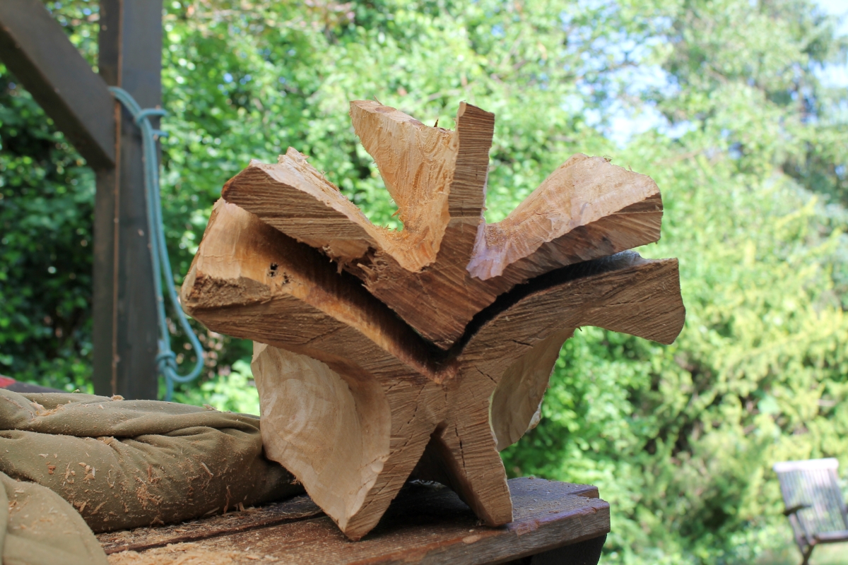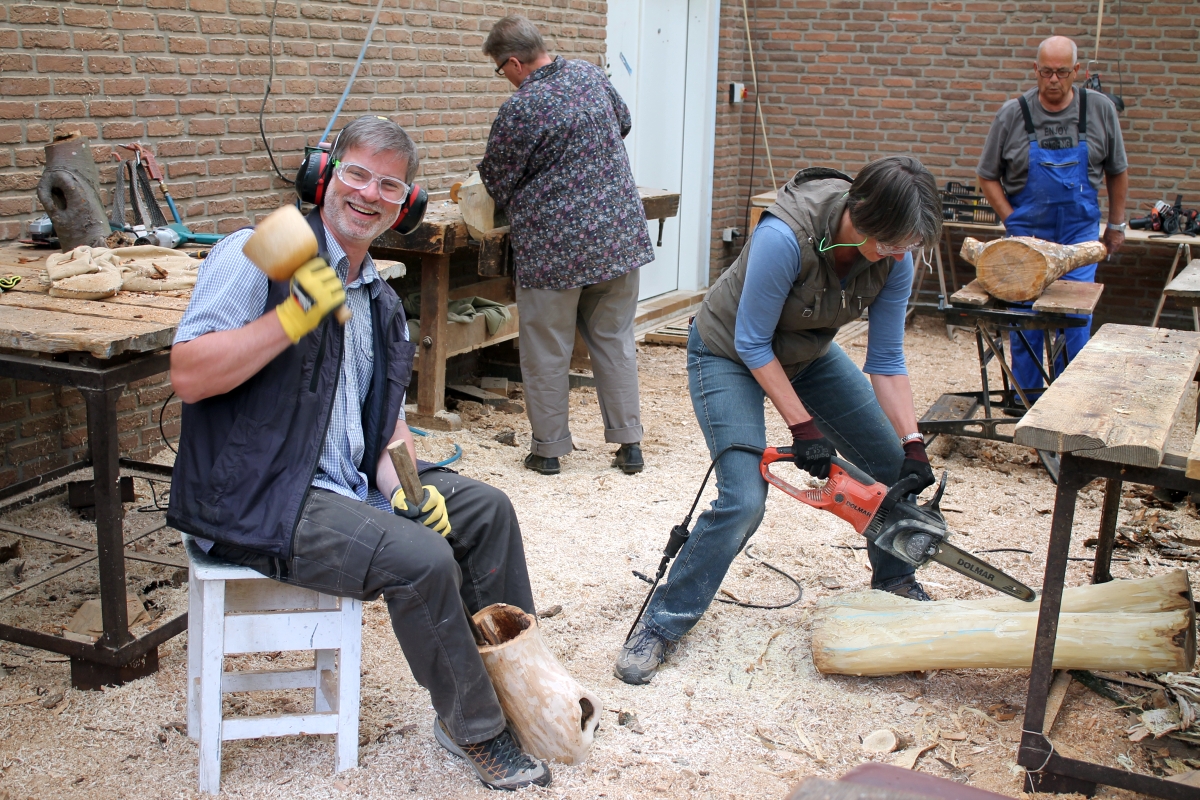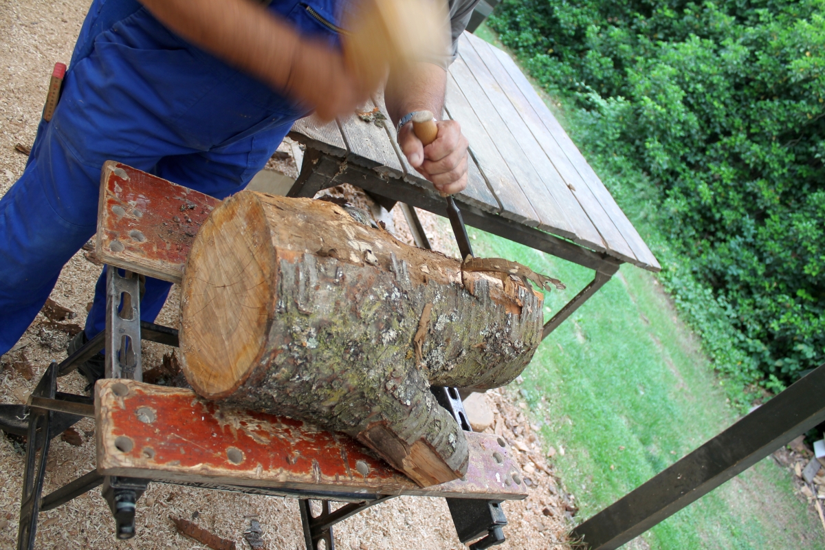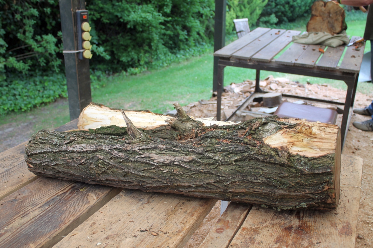 Hardy aus der Schweiz ist mal wieder da, ebenso Klaus und Inka. Die Neuen sind Margarete, Jürgen und Karin. Was die Hölzer angeht wurden gewählt: Eiche, Robinie, Buche, Birke, Esche (Vermutung, aber nicht sicher) und Chriäsi (so nennen die Alpenländer die Kirsche). Das "Ch" wird dabei gesprochen wie in "Chuchichäschtli" (Küchenkästchen). Da fragt sich der Hochdeutsche, "Ist das noch Dialekt, oder schon Kehlkopfanomalie?" Weder noch, Freunde der leichten Muse - das ist ganz normales Schwietzerdütsch.