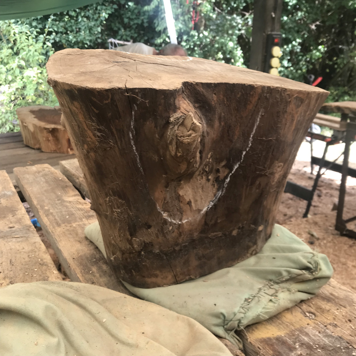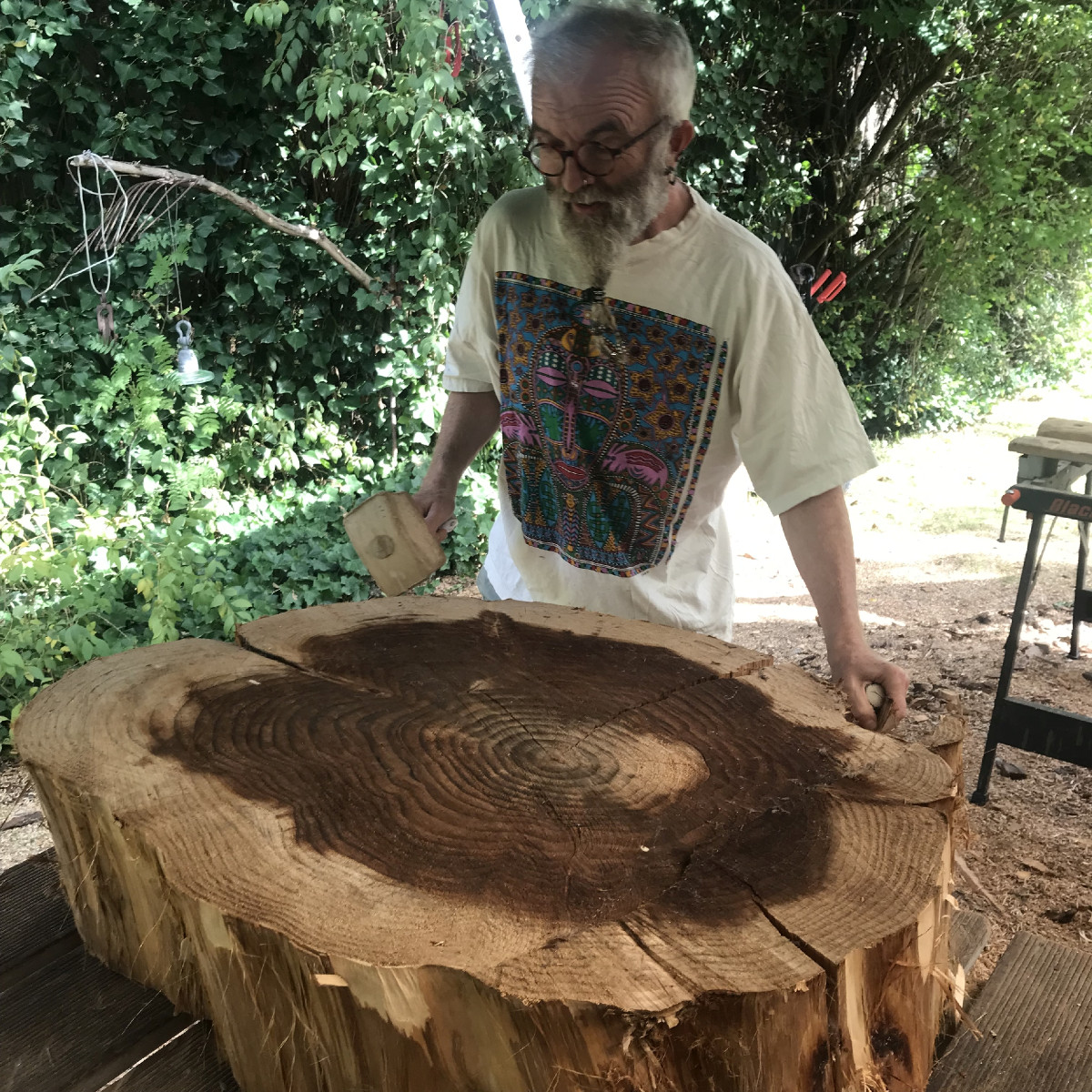 - Wiederholungstäter Siggi, der Sequoia mitgebracht hat - eine Baumscheibe. (Kann man daraus etwas machen? Aber hallo Siggi, man kann!)