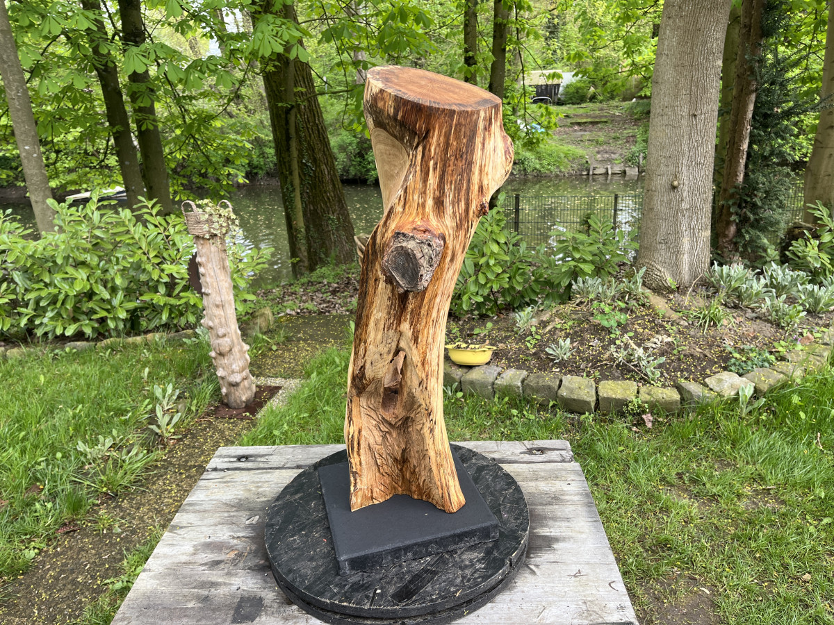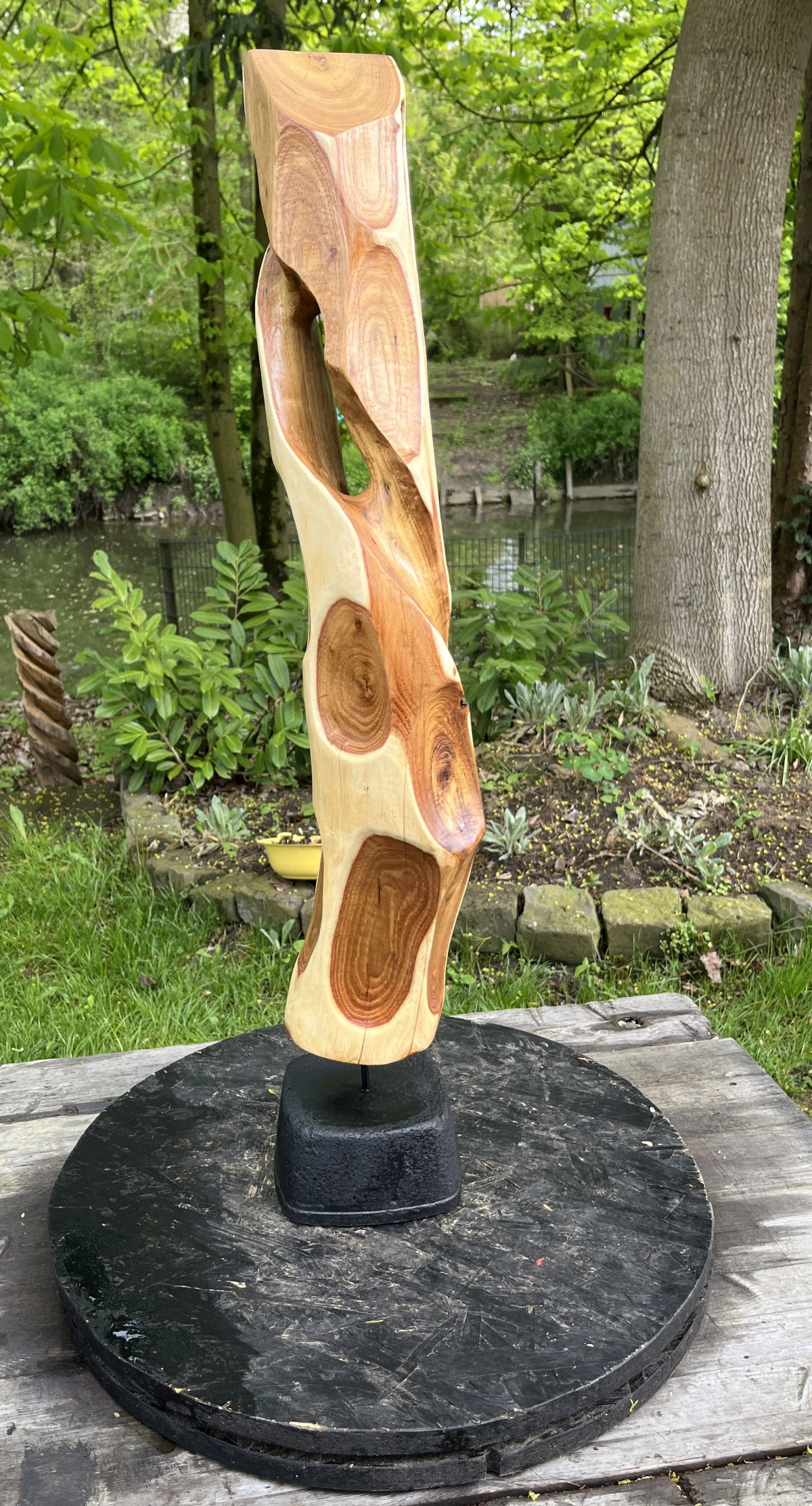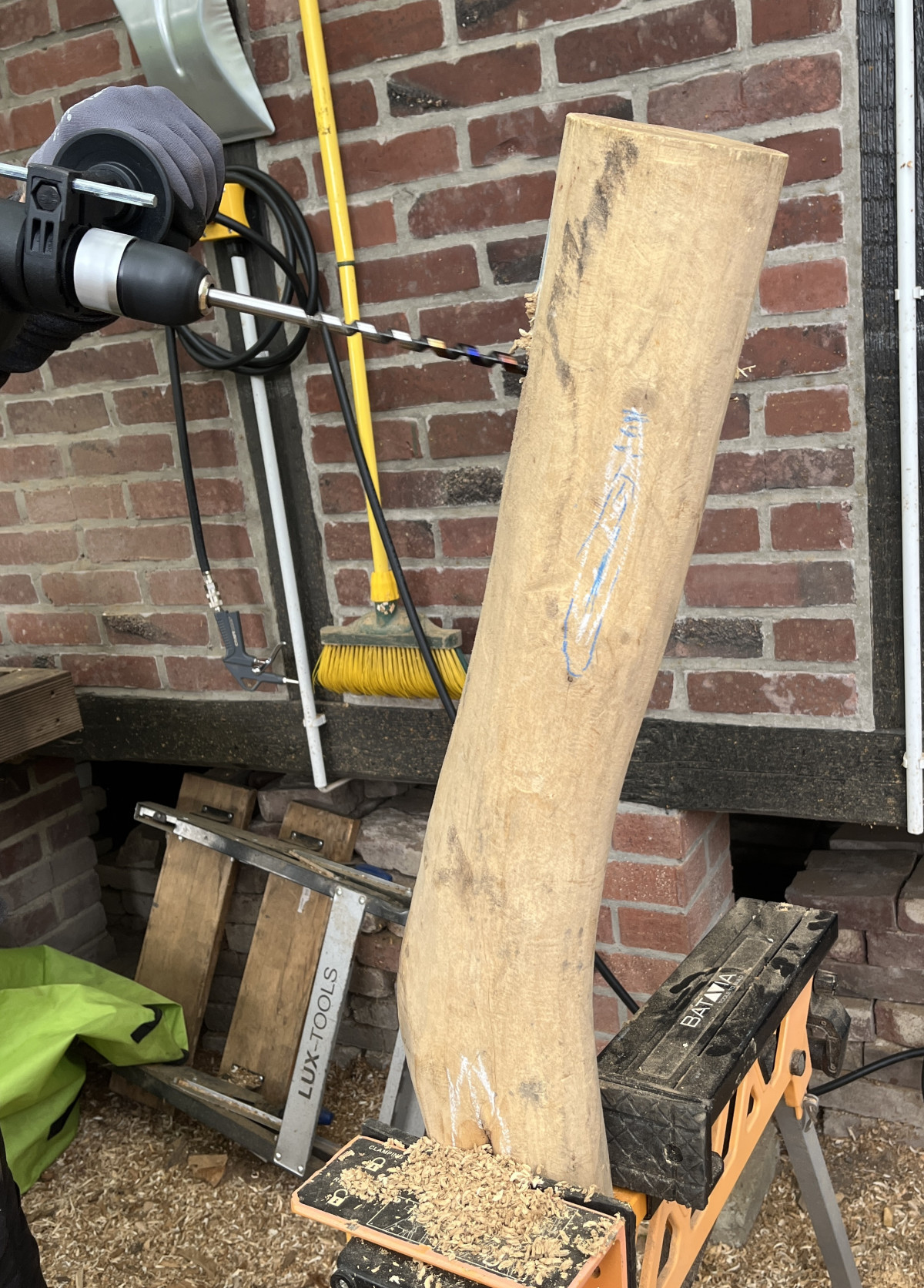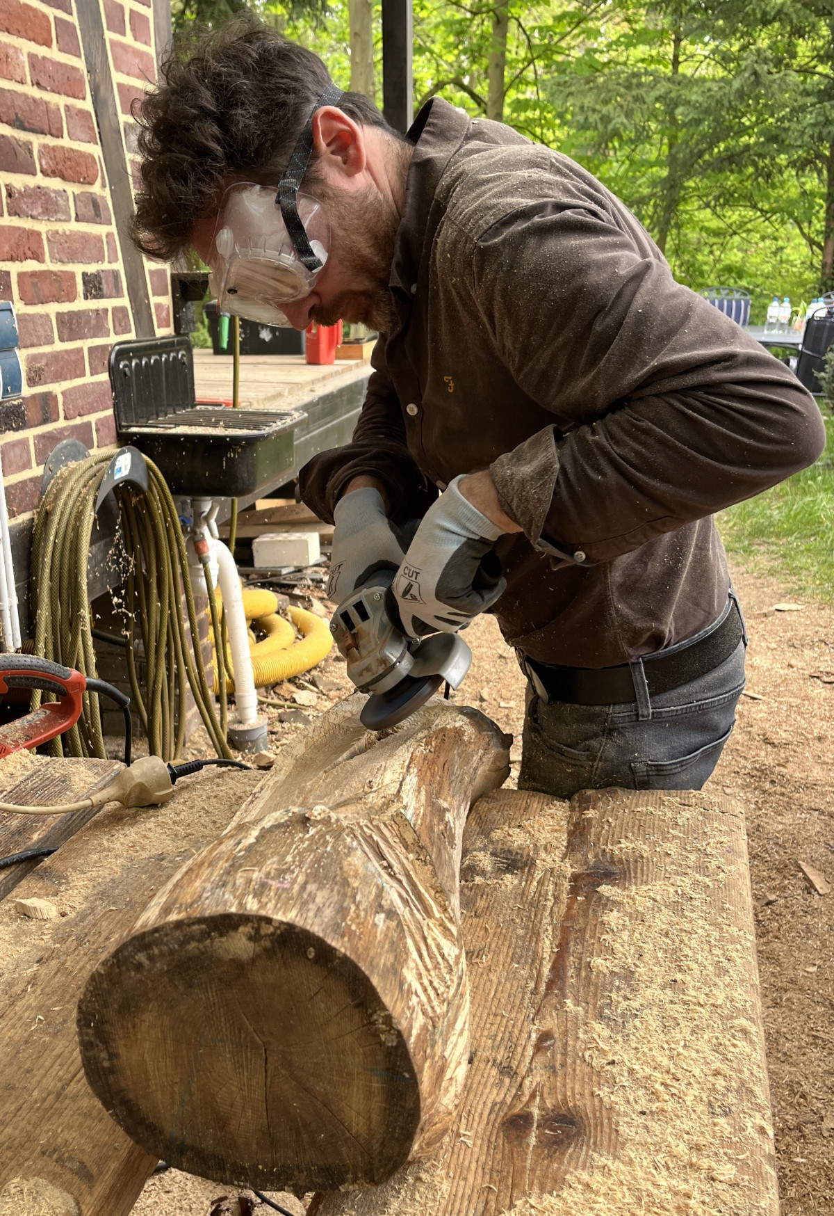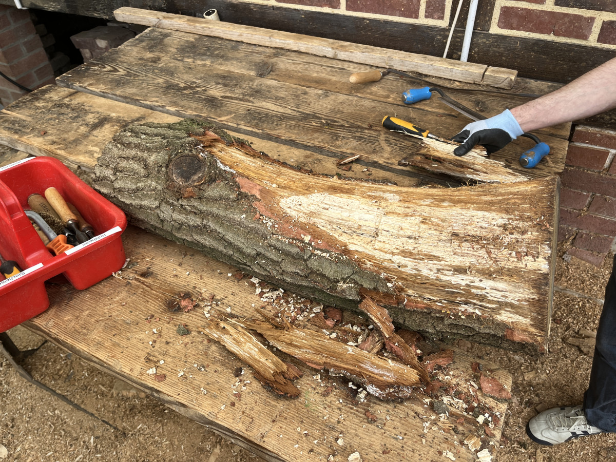 Mit einem vierteiligen Puzzle aus der eigenen Fichte reiste Steffen aus dem fernen Berlin an. Seine eigene Vorgabe, ich möchte aus min. 3 Stücken eine Skulptur erstellen, fand ich einen wundervollen kreativen Rahmen. So begann er seine kreative Reise genauso wie Youssif der sich einen Rohling aus Eiche aussuchte und ebenfalls Schritt für Schritt dem Wuchs des Holzes nachging. Steffens gespaltene Fichte war bestimmt nichts für Ludger. Ludger legte viel Wert auf rissfreies Holz und zum Glück wurden wir uns einig welche mitgebrachten Rohlinge nicht mehr seine Heimreise in Sauerland antreten werden. Ich glaube ich muss ihn mal mit einem Anhänger besuchen kommen.