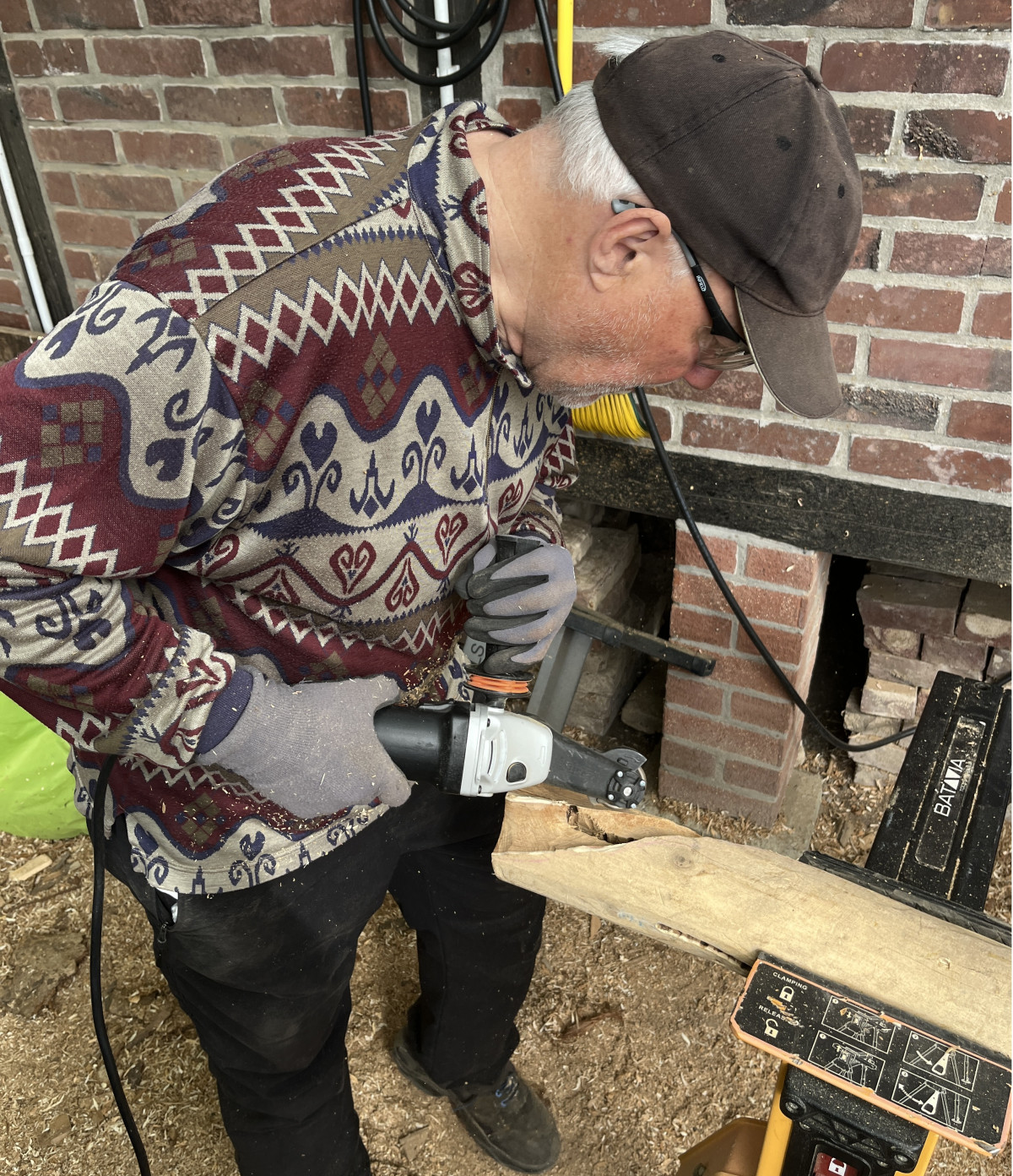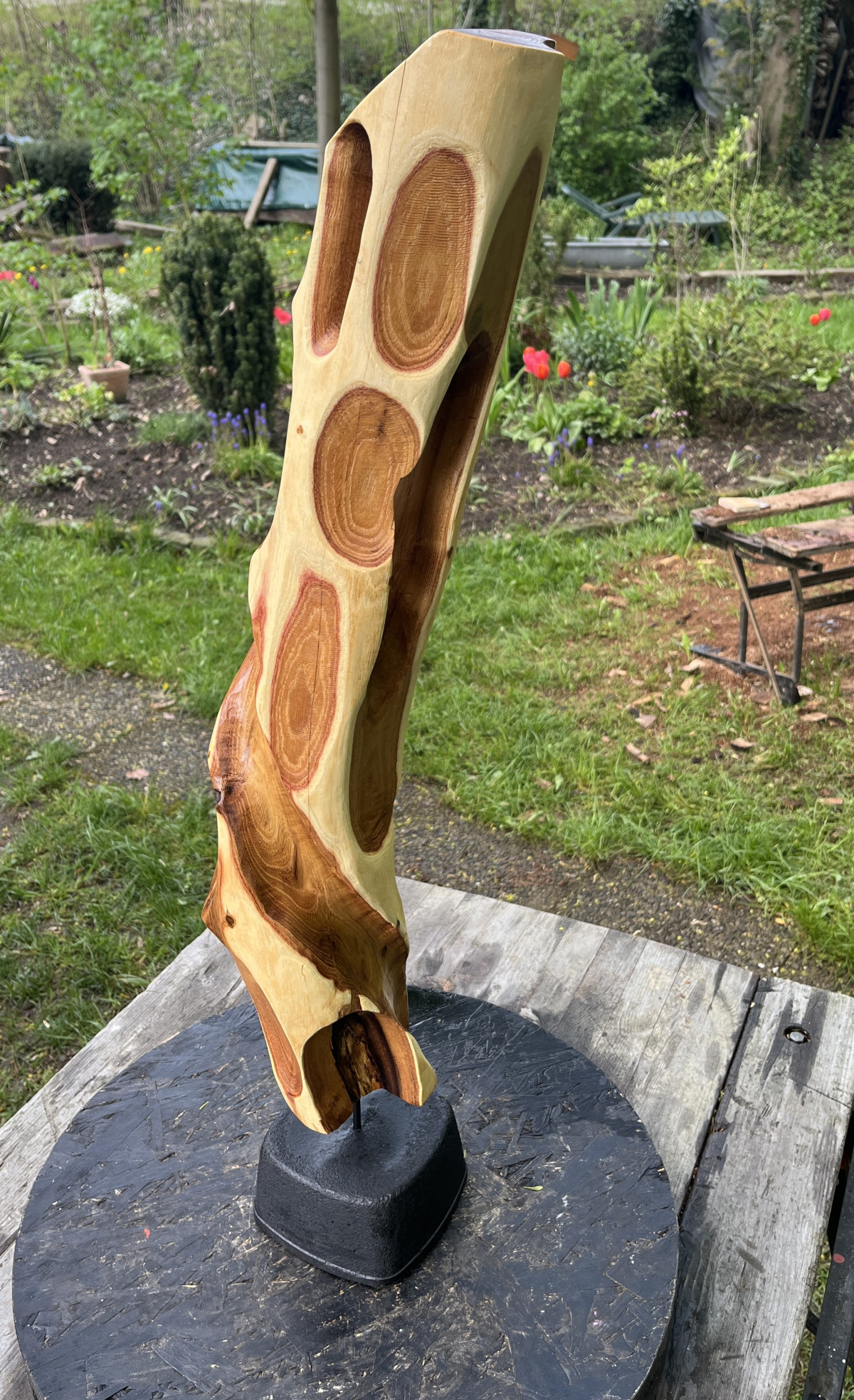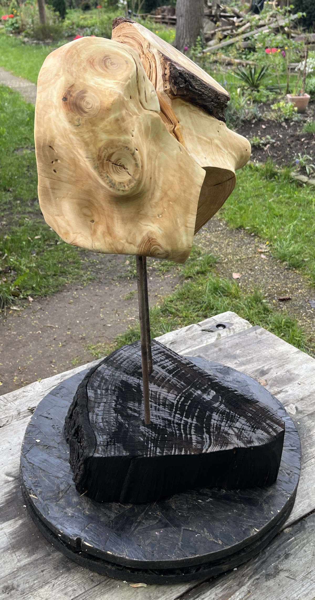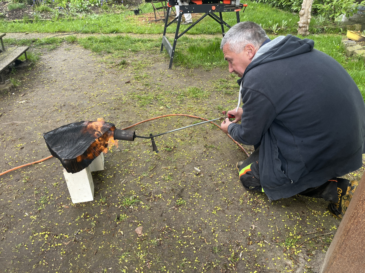 Mit einem vierteiligen Puzzle aus der eigenen Fichte reiste Steffen aus dem fernen Berlin an. Seine eigene Vorgabe, ich möchte aus min. 3 Stücken eine Skulptur erstellen, fand ich einen wundervollen kreativen Rahmen. So begann er seine kreative Reise genauso wie Youssif der sich einen Rohling aus Eiche aussuchte und ebenfalls Schritt für Schritt dem Wuchs des Holzes nachging. Steffens gespaltene Fichte war bestimmt nichts für Ludger. Ludger legte viel Wert auf rissfreies Holz und zum Glück wurden wir uns einig welche mitgebrachten Rohlinge nicht mehr seine Heimreise in Sauerland antreten werden. Ich glaube ich muss ihn mal mit einem Anhänger besuchen kommen.